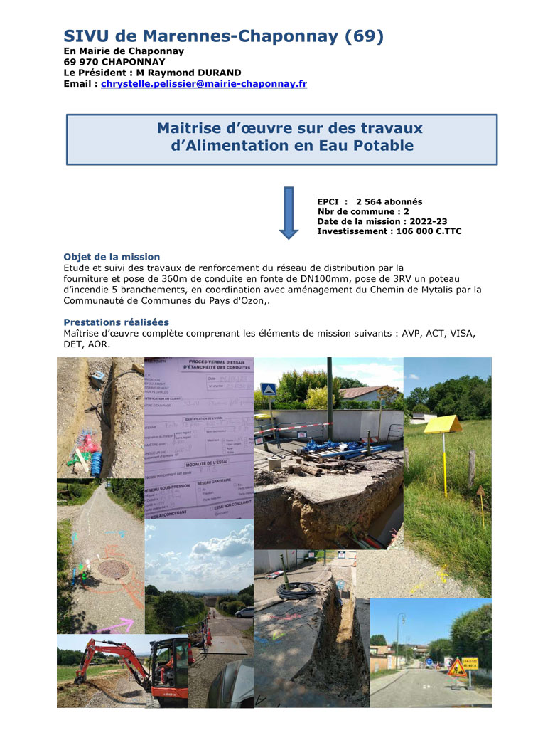 Renforcement du réseau de distribution par la fourniture et pose de 360m en fonte DN100mm, 3 RV, 1 PI, reprise de 5 branchements
